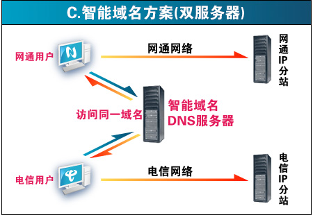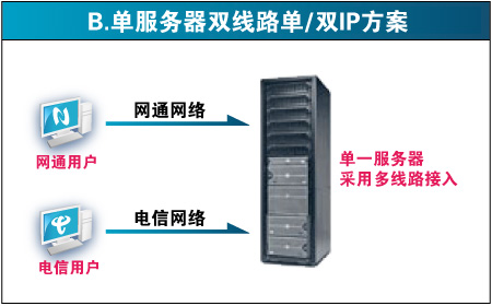 目前,虚拟主机行业中涌现出几家服务机构推出各种南北互联互通的虚拟主机服务,他们的解决大体分为四种,详见:双线路能打通南北网络瓶颈吗? (来源:世界网络) 第一种:双服务器双机房方案 第三种:智能域名方案(双服务器) 缺点:跟第一种方案一样,出多一倍的费用,并且"智能"解析域名在国内还不成熟,经常发生电信的用户访问时解析到网通ip的情况(因为ip数据库不准确)。 第四种:CDN解决方案 通过相关程序自动抓取用户源服务器的数据,然后缓存在不同网段节点的服务器上。 多元易购采用的双线数据机房为单服务器单ip双线接入方案,电信网通各15G出口,同时到铁通、联通、移动也有高速的路由。彻底解决了南北互联互通的问题,并且价格上也较其他双线方案便宜。比如,一个空间200元,用第一、三种方案需要200*2=400元,用第四种方案,需要再购买一个cdn,一共是200+300=500元。而采用第二种方案,我司的价格仅为300元,不但效果最好,而且成本最低。所以多元易购提供的双线路虚拟主机是目前国内性价比最高的双线主机!